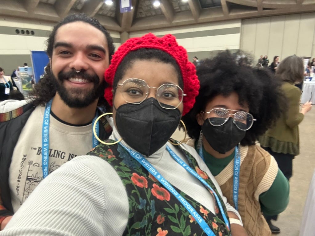 I met some lovely Black girl MFA students—a bunch from University of South Carolina, and one from Emerson, who I invited to join me and the midnight & indigo editors for lunch. They all were the kind of hopeful that makes me think tomorrow might be okay.
